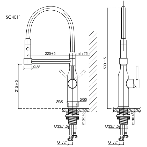 Высота излива 21.5 см