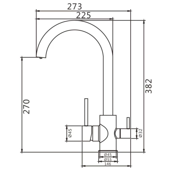 Длина излива 22 см