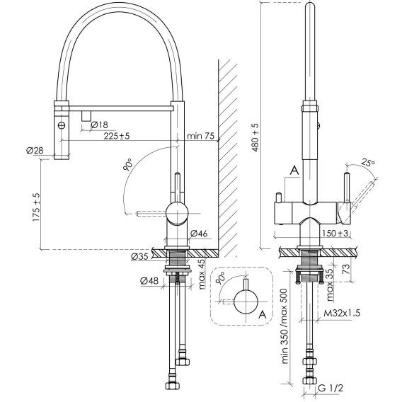 Высота излива 17.5 см