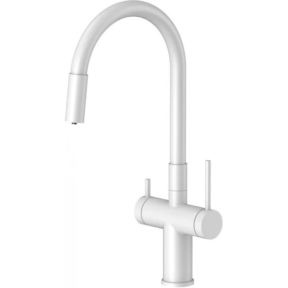 Смеситель для кухни Santek Энсо WH5A43127B001 с подключением к фильтру, гибким изливом, белый матовый