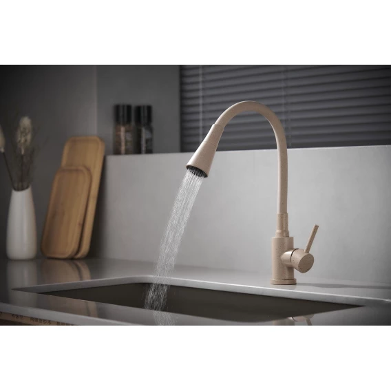 Смеситель для кухни Savol S-3002SM-S с гибким изливом, песочный