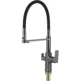 Смеситель для кухни Savol S-L1809Q-01 с подключением к фильтру, гибким изливом, графит/черный