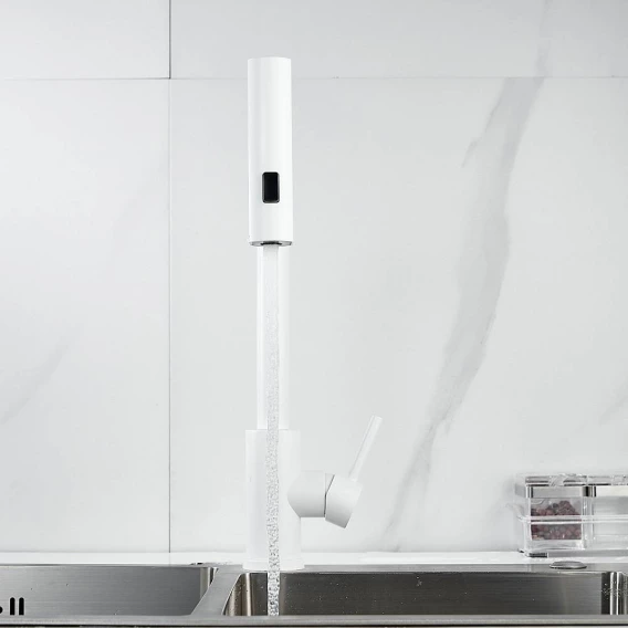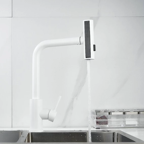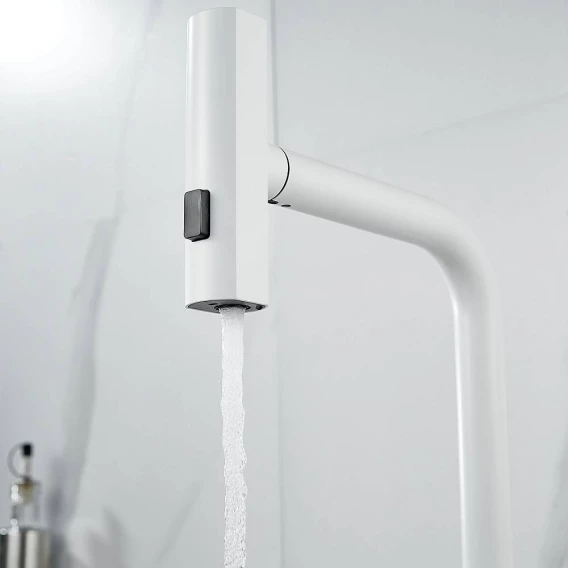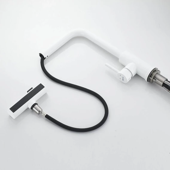 Смеситель для кухни Shevanik S263C с выдвижным изливом, белый