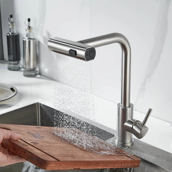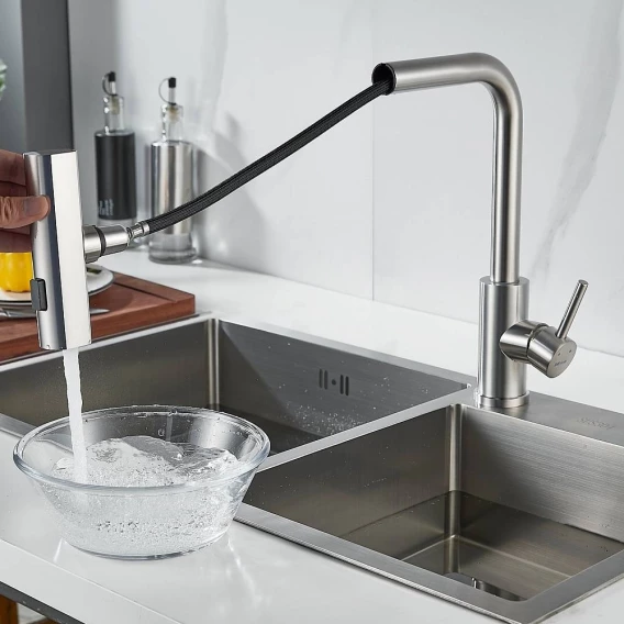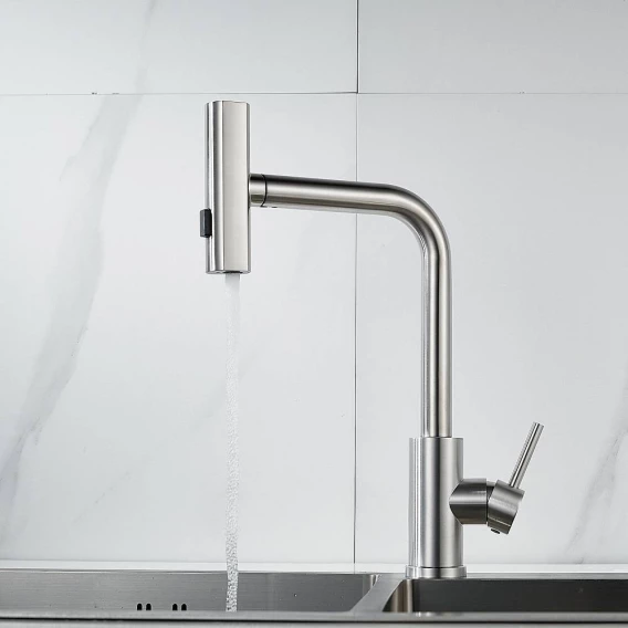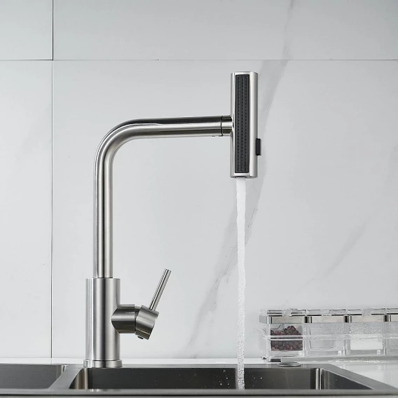 Смеситель для кухни Shevanik S263L с выдвижным изливом, сатин