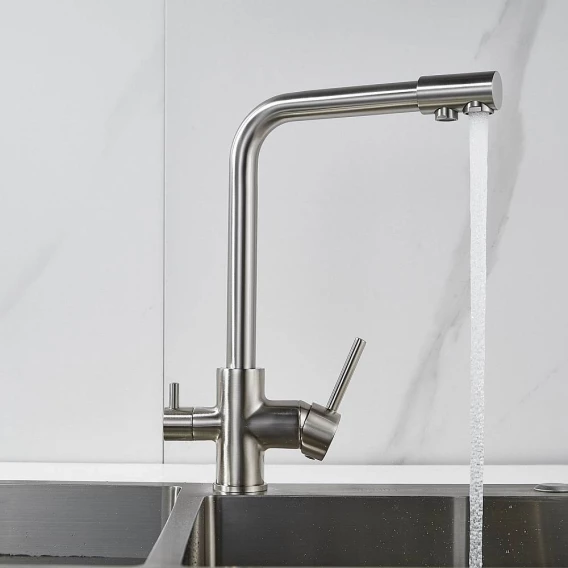 Смеситель для кухни Shevanik S328L с подключением к фильтру, сатин