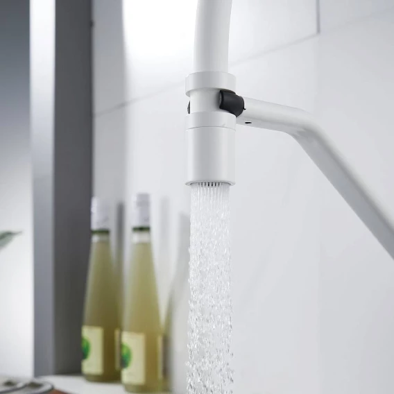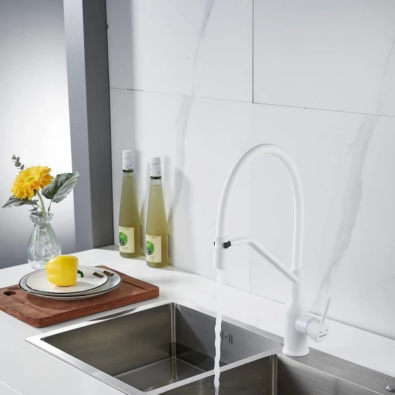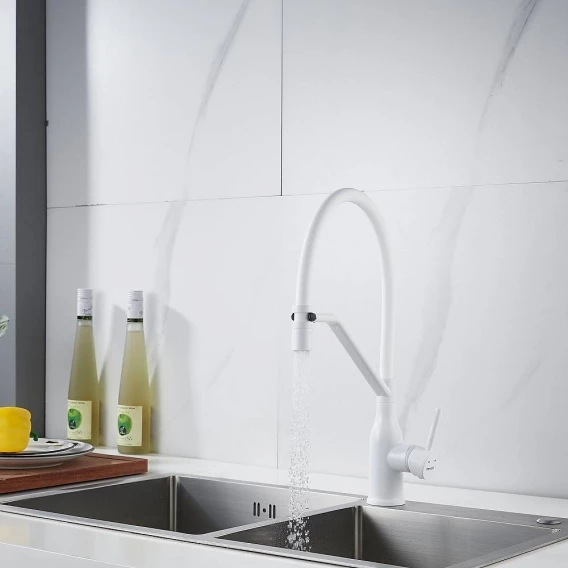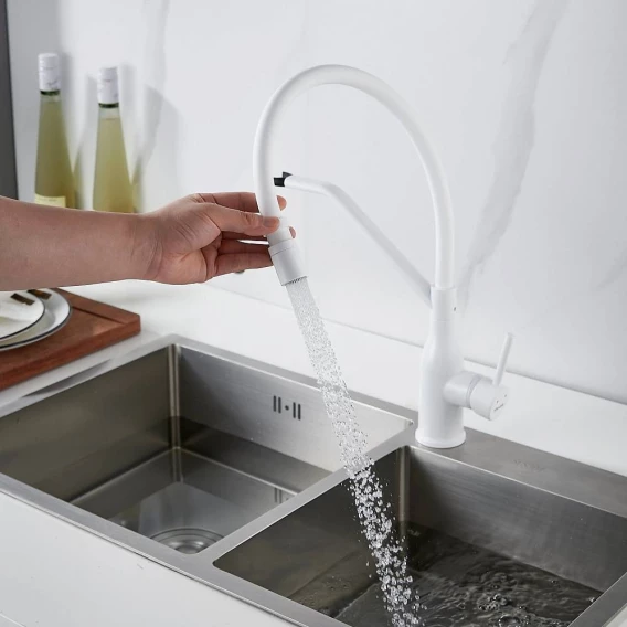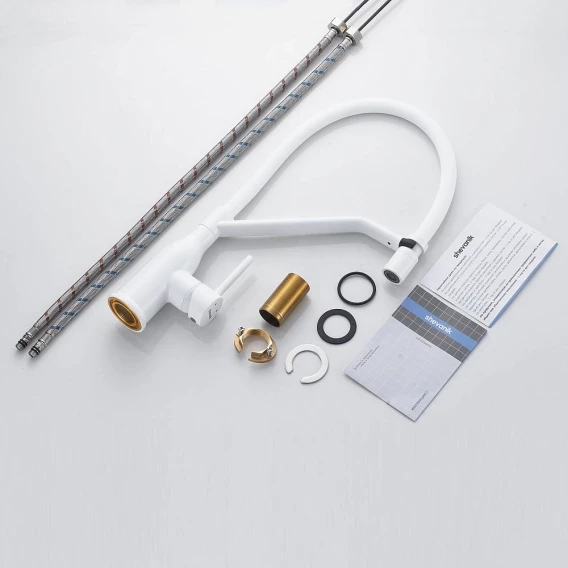 Смеситель для кухни Shevanik S343C-1 с гибким изливом, белый
