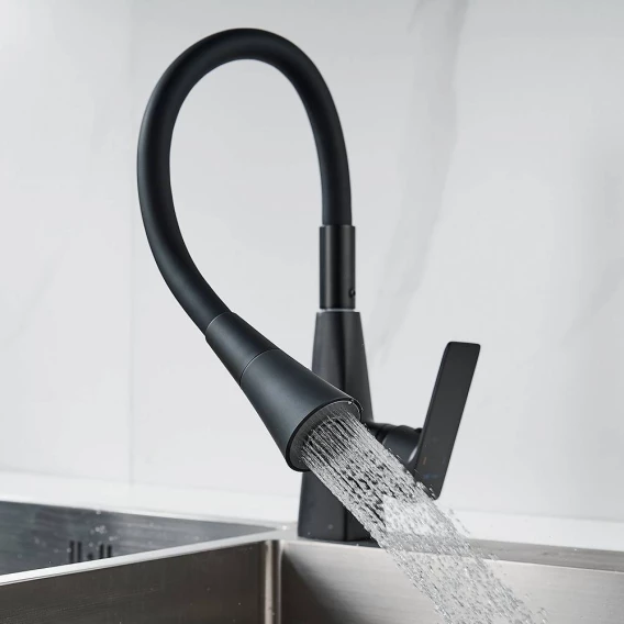 Смеситель для кухни Shevanik S543H-3 с гибким изливом, черный матовый