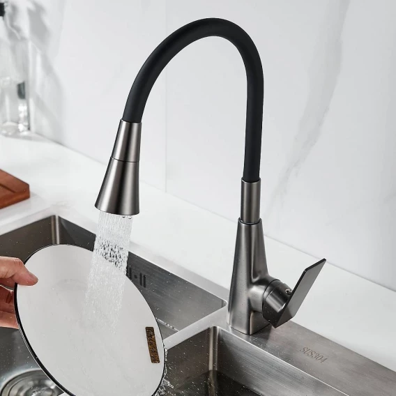 Смеситель для кухни Shevanik S543T-3 с гибким изливом, оружейная сталь