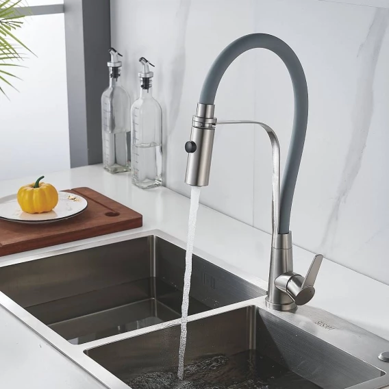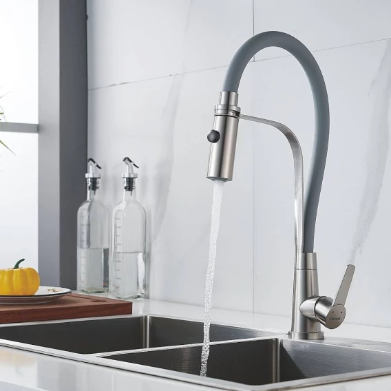 Смеситель для кухни Shevanik S943L-9 с гибким изливом, сатин