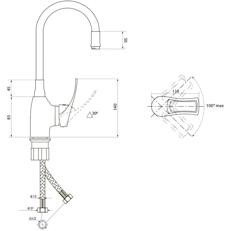 Смеситель для раковины без донного клапана Cersanit Moduo A64094