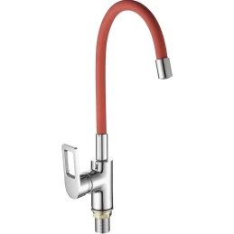 Смеситель для кухни Славен Прораб Серия-Ц СЛ-ОД-Ц2К с гибким изливом, хром/красный