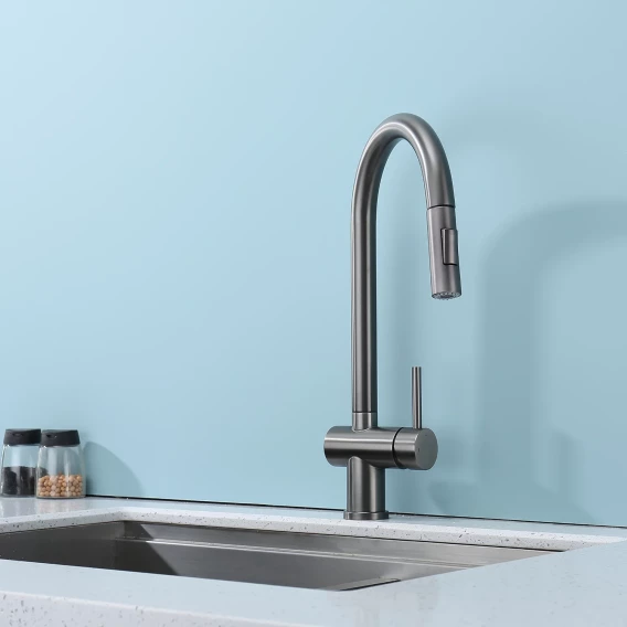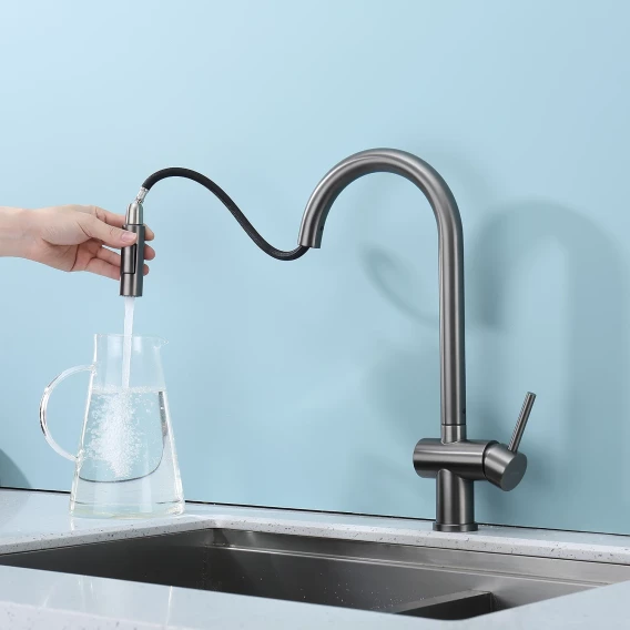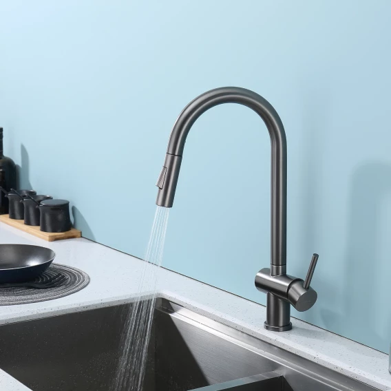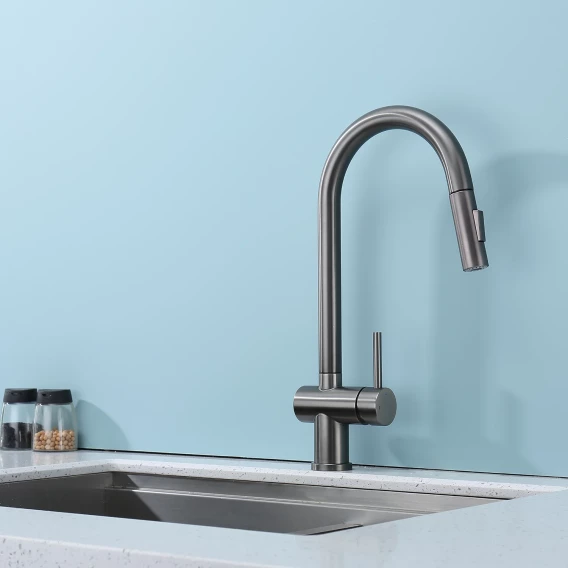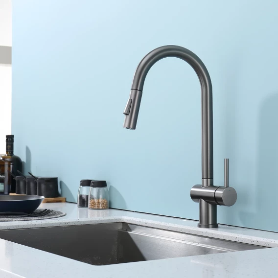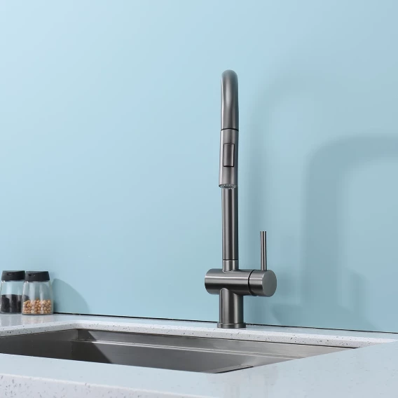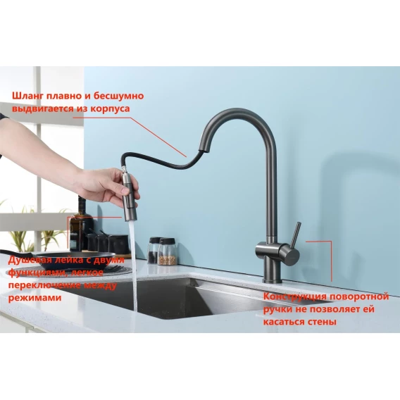 Смеситель для кухни Splenka S204.49.09 с выдвижным изливом, графит матовый