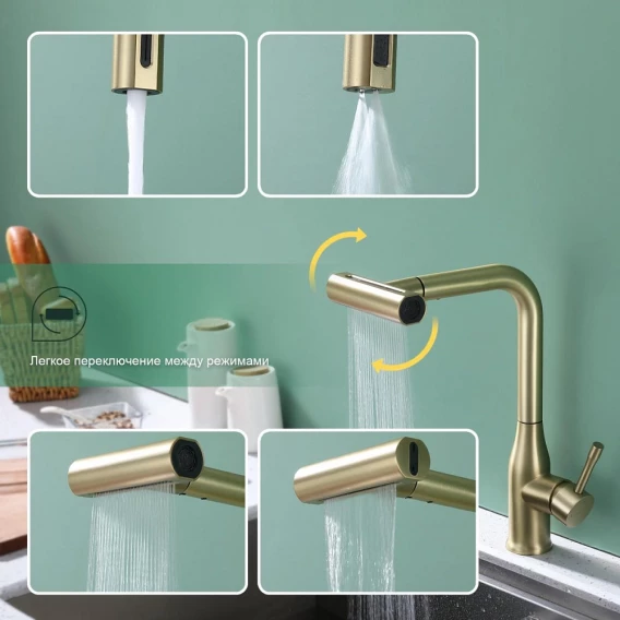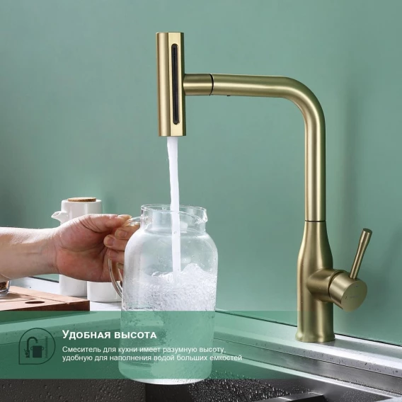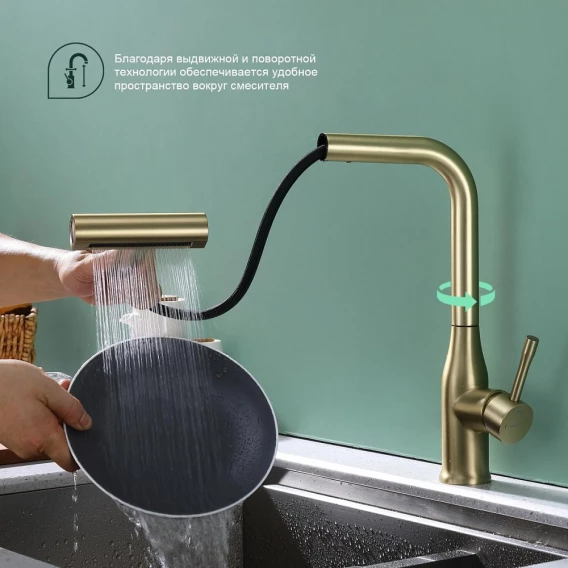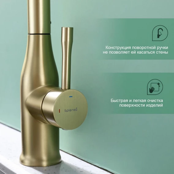 Смеситель для кухни Splenka S206.49.03 с выдвижным изливом, золотой матовый