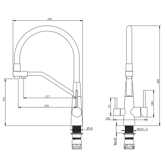 Высота излива 19.1 см