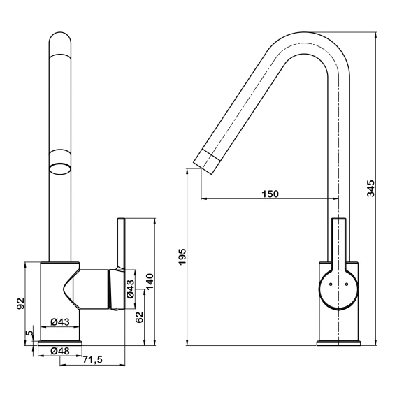 Длина излива 15 см