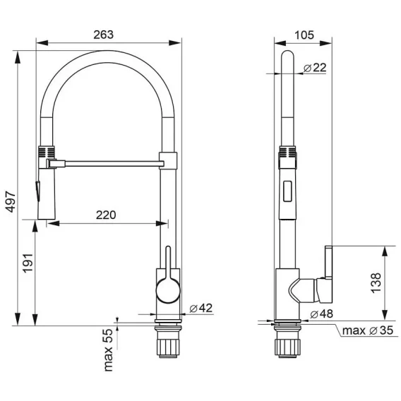 Смеситель для кухни Ulgran U-024-341 с гибким изливом, ультра-белый