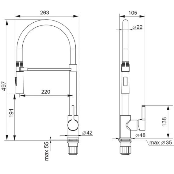 Длина излива 22 см