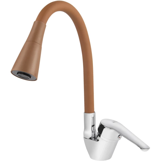 Смеситель для кухни Viko V-3534 с гибким изливом, хром/коричневый