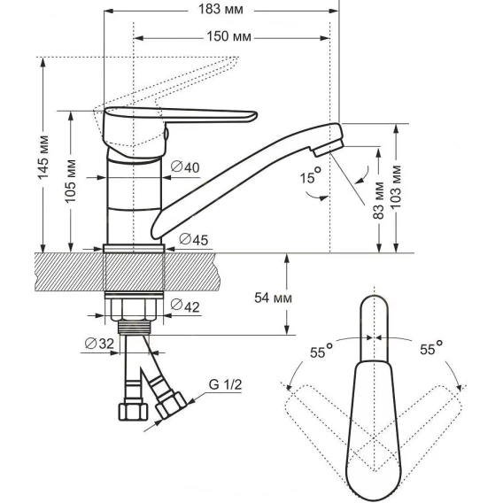 Длина излива 15 см