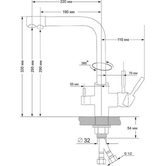 Смеситель для кухни Viko V-5024 с подключением к фильтру, черный мрамор