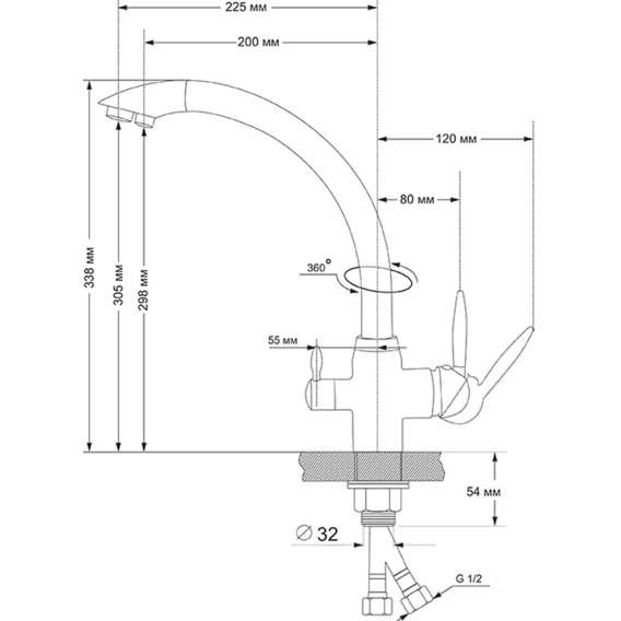 Длина излива 22.5 см