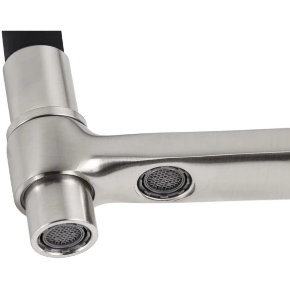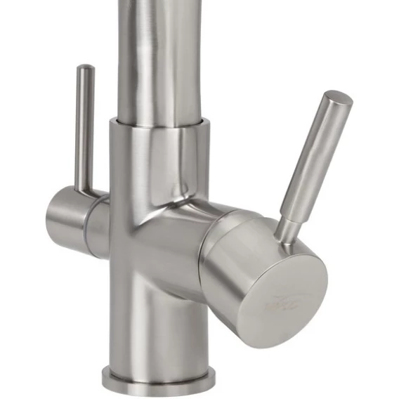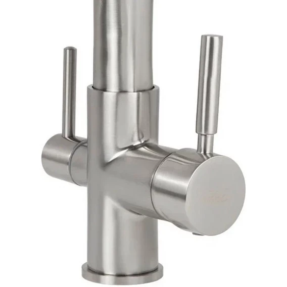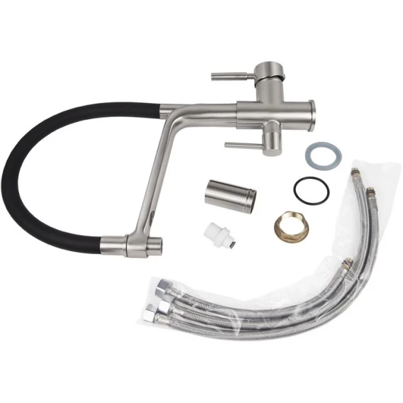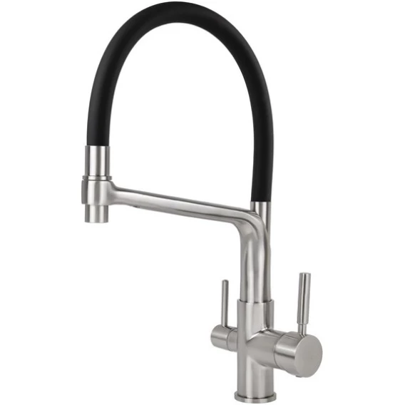Смеситель для кухни Viko V-5605 с подключением к фильтру, гибким изливом, нержавеющая сталь/черный