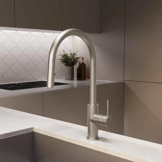 Смеситель для кухни Vincea City VKF-2C1BN с выдвижным изливом, сатин