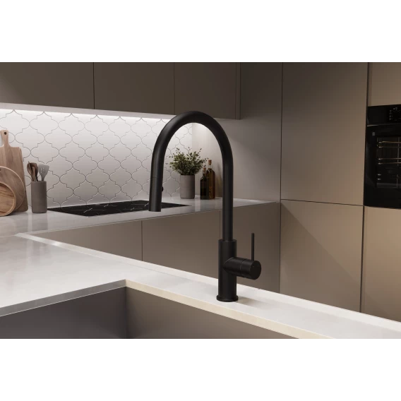 Смеситель для кухни Vincea City VKF-2C1MB с выдвижным изливом, черный матовый