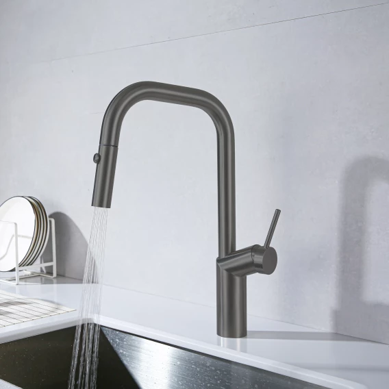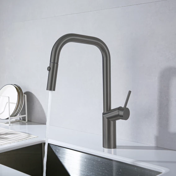 Смеситель для кухни Vincea VKF-107GM с выдвижным изливом, вороненая сталь
