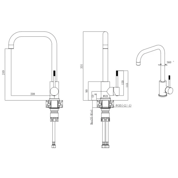 Смеситель для кухни Voda K57 нержавеющая сталь