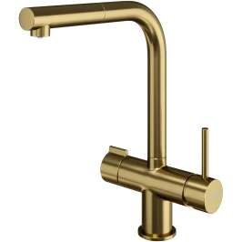 Смеситель для кухни WasserKRAFT A8987 с подключением к фильтру, выдвижным изливом, золотой матовый