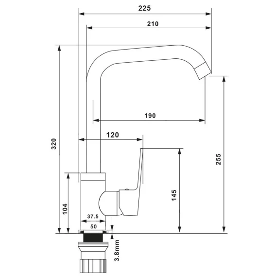 Высота излива 25.5 см