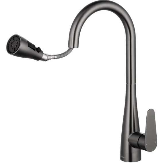 Смеситель для кухни Wonzon & Woghand WW-121E201B-BGG с выдвижным изливом, темный графит матовый