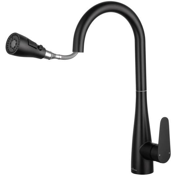 Смеситель для кухни Wonzon & Woghand WW-121E201B-MB с выдвижным изливом, черный матовый