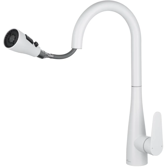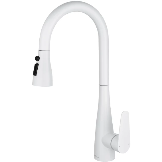 Смеситель для кухни Wonzon & Woghand WW-121E201B-MW с выдвижным изливом, белый матовый