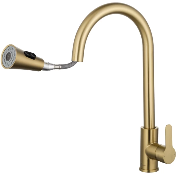 Смеситель для кухни Wonzon & Woghand WW-121E201L-BG с выдвижным изливом, золотой матовый