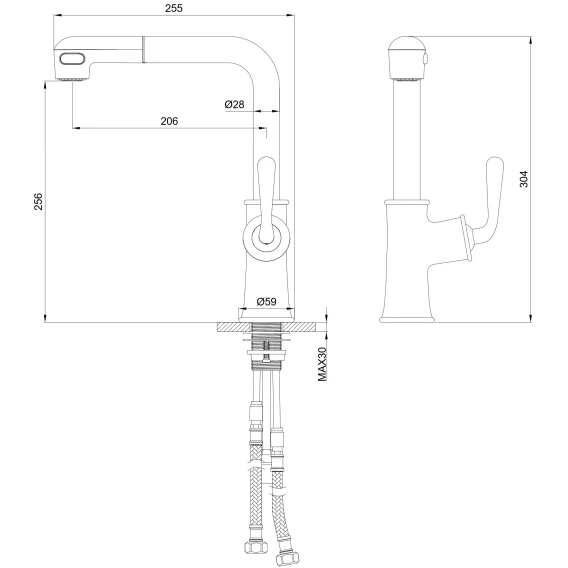 Смеситель для кухни Wonzon & Woghand WW-88439008A-CR с выдвижным изливом, хром