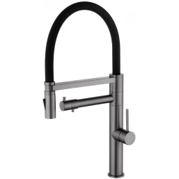 Смеситель для кухни Wonzon & Woghand WW-88458007-BGM с подключением к фильтру, гибким изливом, темный графит матовый
