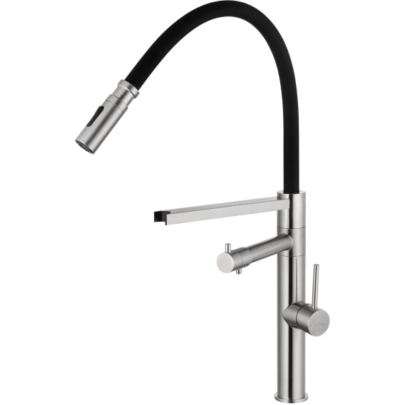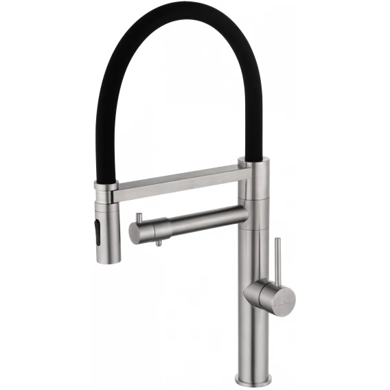 Смеситель для кухни Wonzon & Woghand WW-88458007-BN с подключением к фильтру, гибким изливом, никель матовый