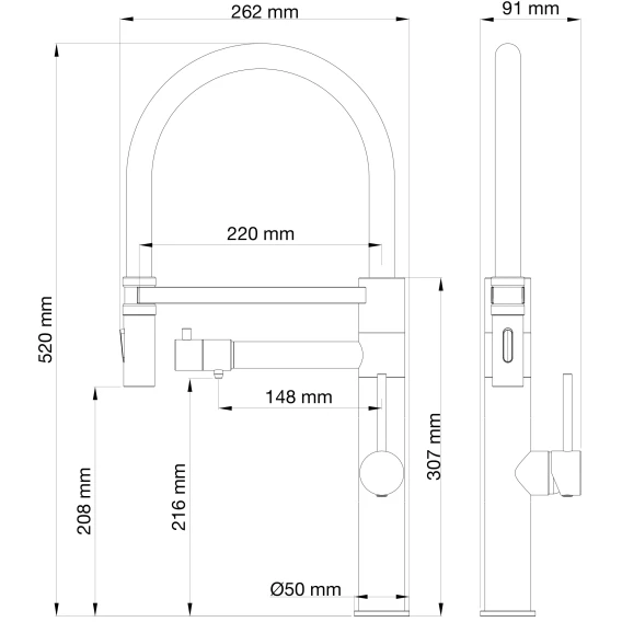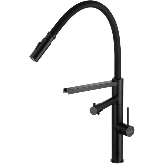 Смеситель для кухни Wonzon & Woghand WW-88458007-MB с подключением к фильтру, гибким изливом, черный матовый