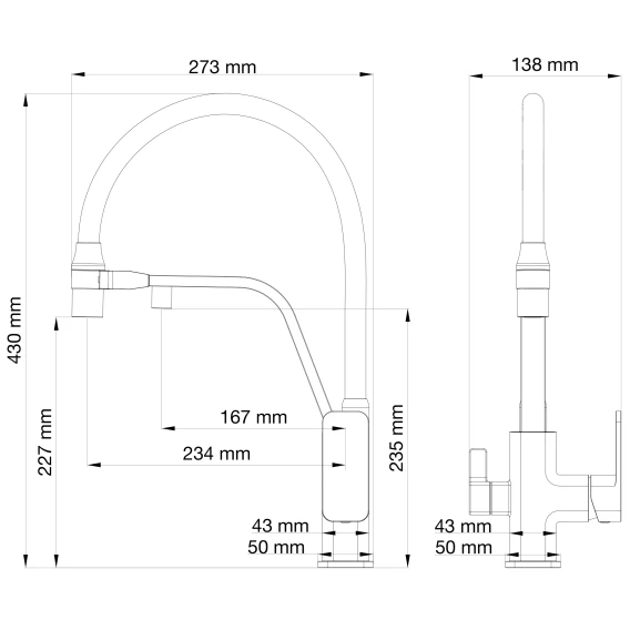 Высота излива 22.7 см