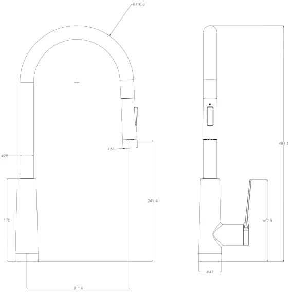 Смеситель для кухни Wonzon & Woghand WW-A20782-BG с выдвижным изливом, золотой матовый