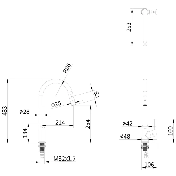 Смеситель для кухни Wonzon & Woghand WW-A21252-MB с выдвижным изливом, черный матовый