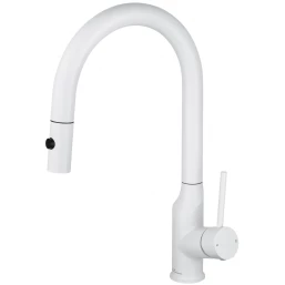 Смеситель для кухни Wonzon & Woghand WW-A21252-MW с выдвижным изливом, белый матовый
