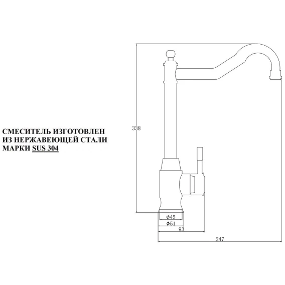 Смеситель для кухни Zorg SH 5208 INOX нержавеющая сталь