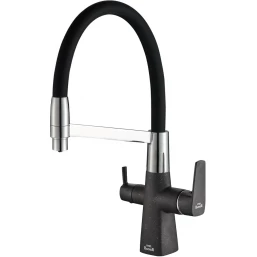 Смеситель для кухни Zorg SH 818-6 BLACK CR с подключением к фильтру, гибким изливом, хром/черный