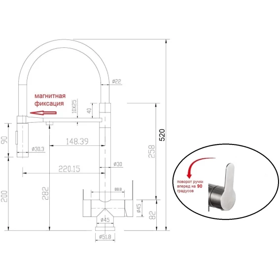 Крепление, Аэратор, Гибкая подводка, Душевая лейка