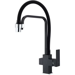 Смеситель для кухни Zorg ZR 341-6 YF BLACK с подключением к фильтру, гибким изливом, черный