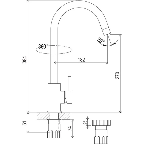 • исполнение: 360° - вращение излива без ограничений