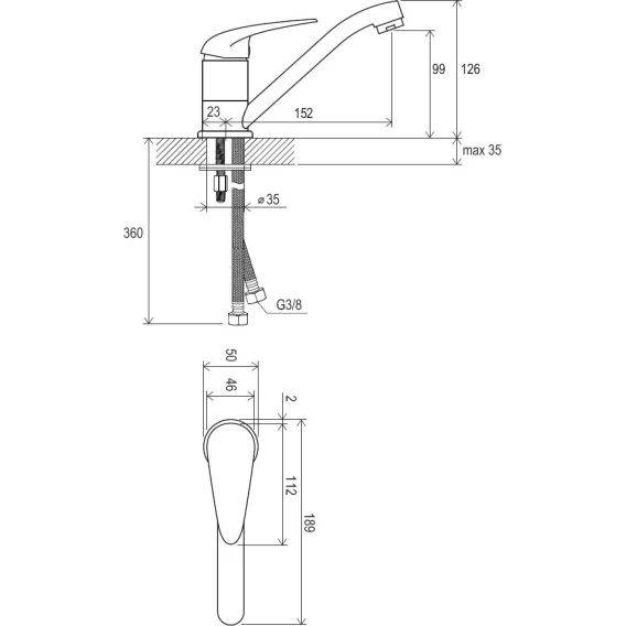 • соединительные шланги: гибкий 350 мм, диаметр G3/8